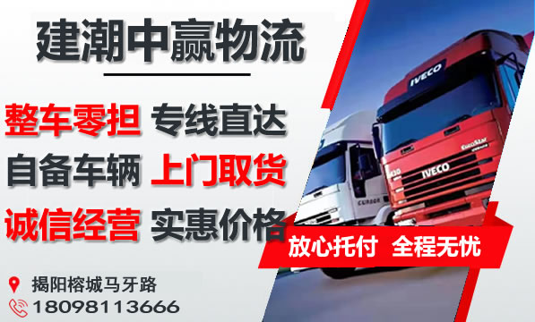 揭阳物流公司为工厂、贸易商、批发商等货主提供整车、零担、大件运输、普快特快、搬家搬厂、回程车调用等全方位的物流服务。在揭阳及周边城市都可以上门提货,送货到指定地点。价格优惠、运货及时,欢迎来电咨询揭阳到德州物流专线,建潮中赢物流将为您全力以赴!